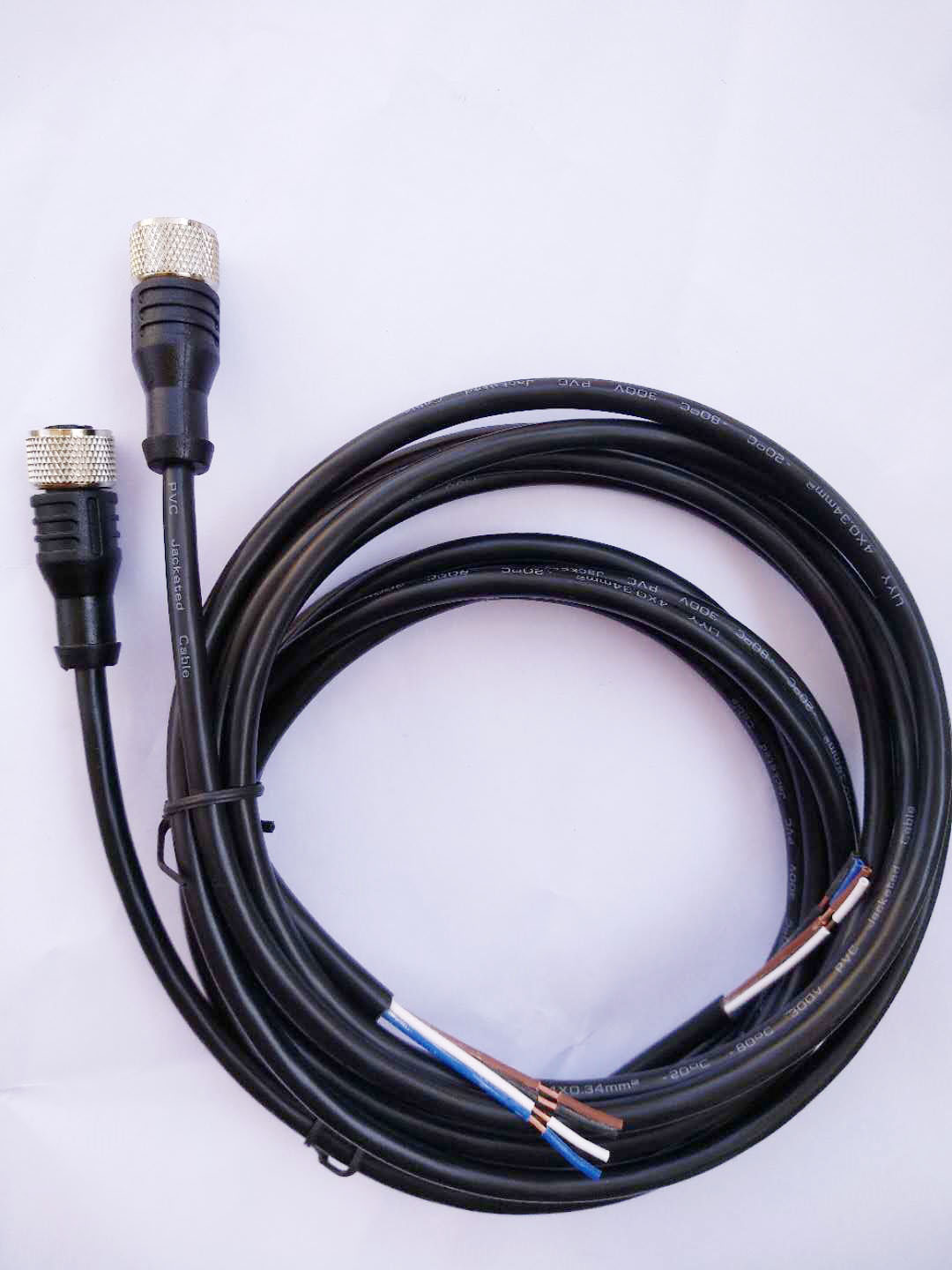 M12成型式带线连接器(插头)产品,在出厂前已经把连接器部件与电缆一起注塑成型为一体,我司常用线材为PUR或PVC外被材质电缆,根据产品的终端应用要求内部芯线绝缘的选材我们常用的有PVC、SR-PVC、PP、PE几种,电路PIN位有3芯、4芯、5芯、6芯、8芯、12芯可选。配套对接的M12板端连接器(插座)有焊接电子线型与PCB板插针型,M12板端焊接型可按顾客预订要求焊接电子线及树脂灌胶封装。